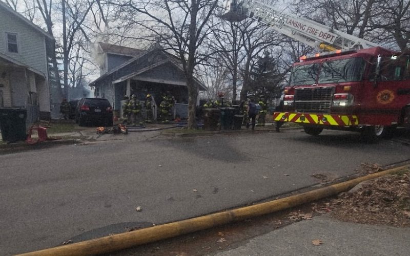 Lansing, MI – At approximately 4:00 PM, Lansing firefighters were dispatched to the 1100 block of Bensch St for reports of a fire in a detached garage. Responding units included Truck 41, Engine 41, Engine 42, Engine 49, Truck 46, Battalion 42, and Medic 41.