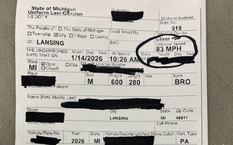 Lansing, MI – Lansing police cited a driver after officers recorded a vehicle traveling 83 miles per hour in a 35 mph zone, according to the Lansing Police Department.